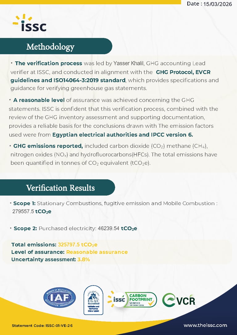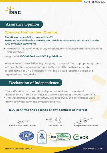 ISO 14064-1:2018 Verification for greenhouse gas emissions report "Organization level" for Cairo Oil Refining Company "Mostorod refinery"